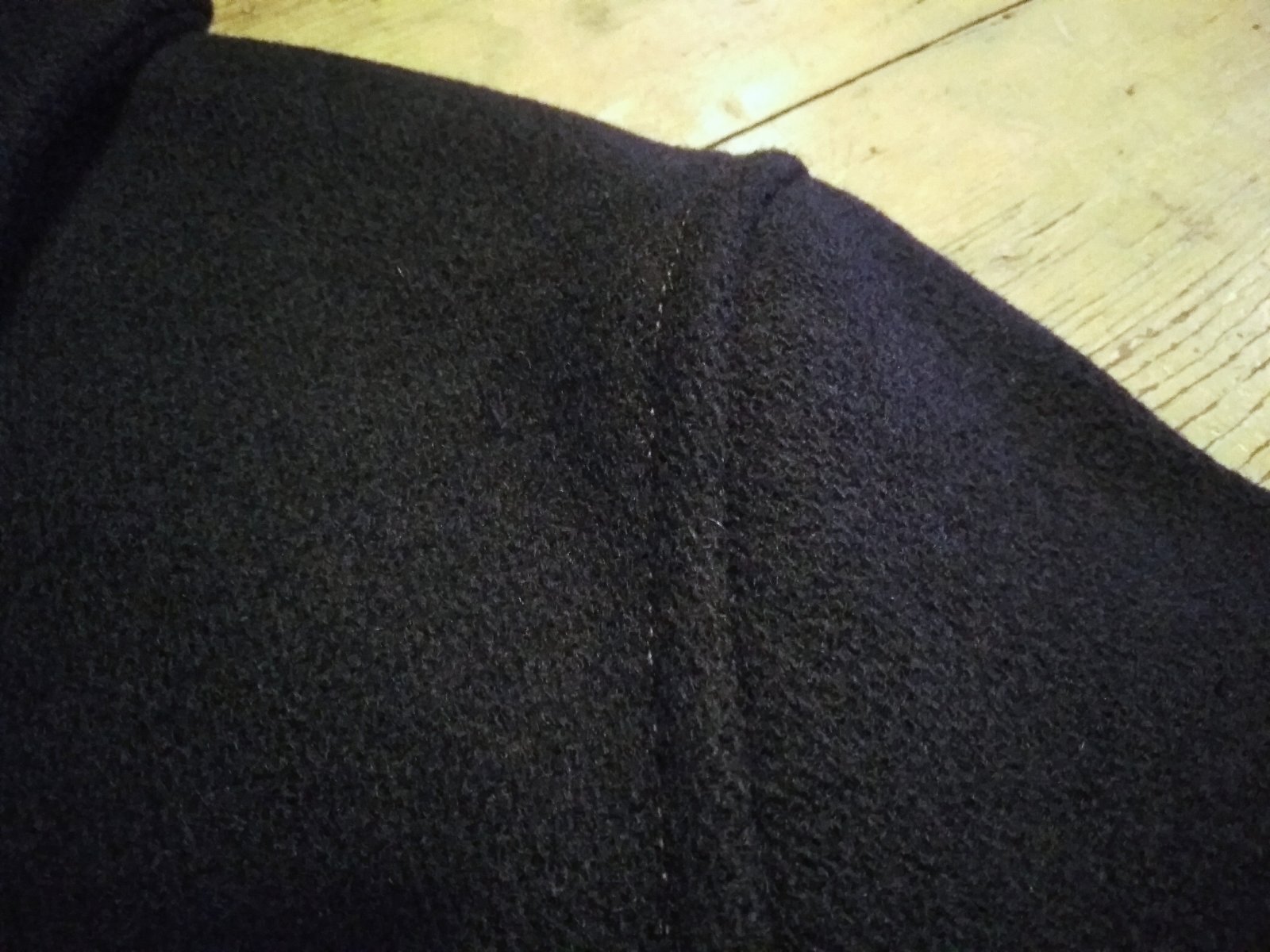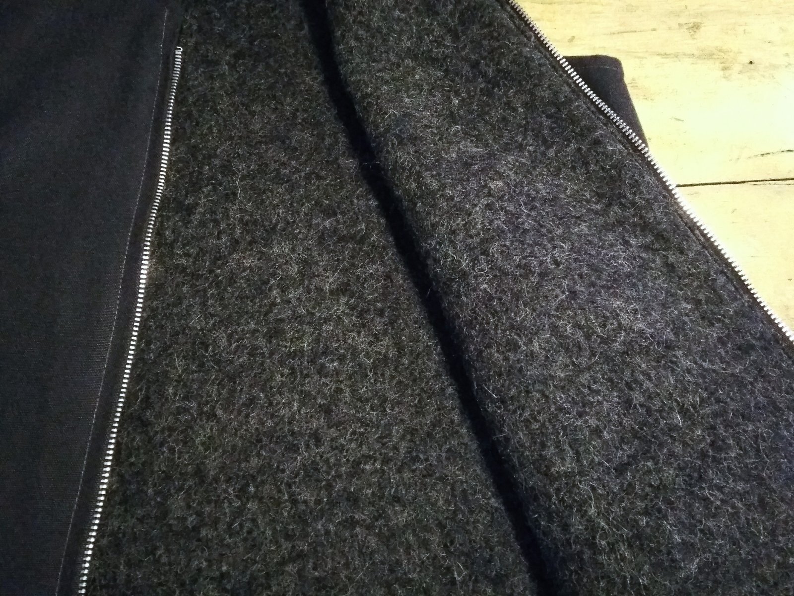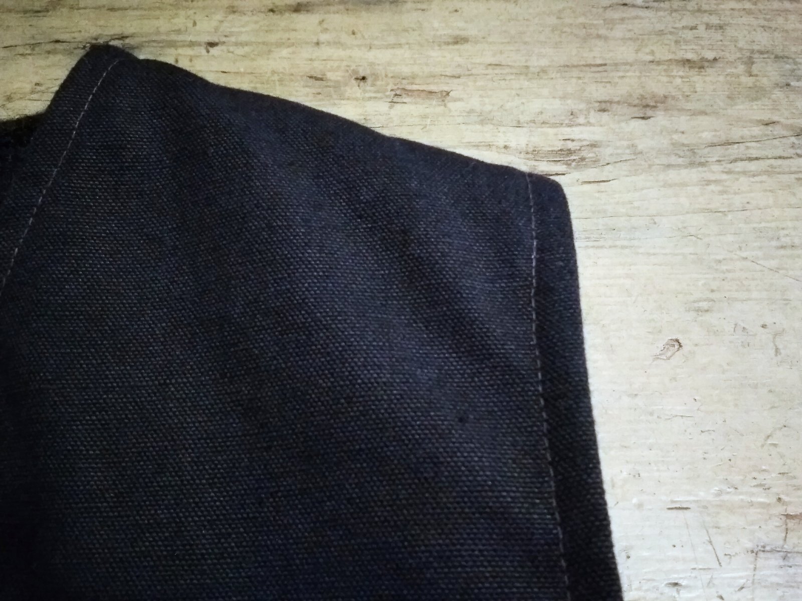 細かい仕様としてフロントのボタンホールや下部ポケットのスレーキをヘリンボーン生地で補強しています。