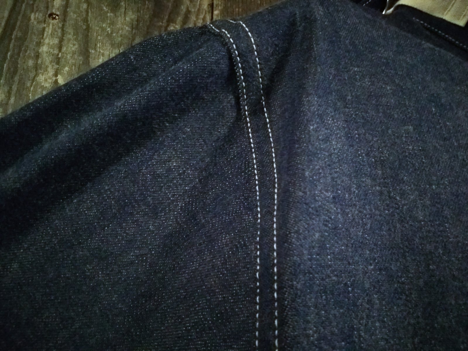 10ozの比較的ライトなデニム地を使用した一着なので、プルオーバー特有の着用時のゴワつきも少なく、サラッと被り易い生地感です。